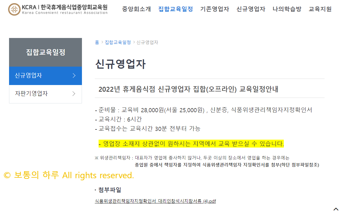 [정보] 휴게음식점 식품 영업신고 준비 신규영업자 경남 위생교육 신청 & 참석회사에서 휴게음식점 영업신고를 하기위해사전에 필요한 준비서류를 미리 준비해놓고 있는데요.위생교육이수증이