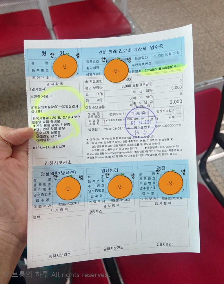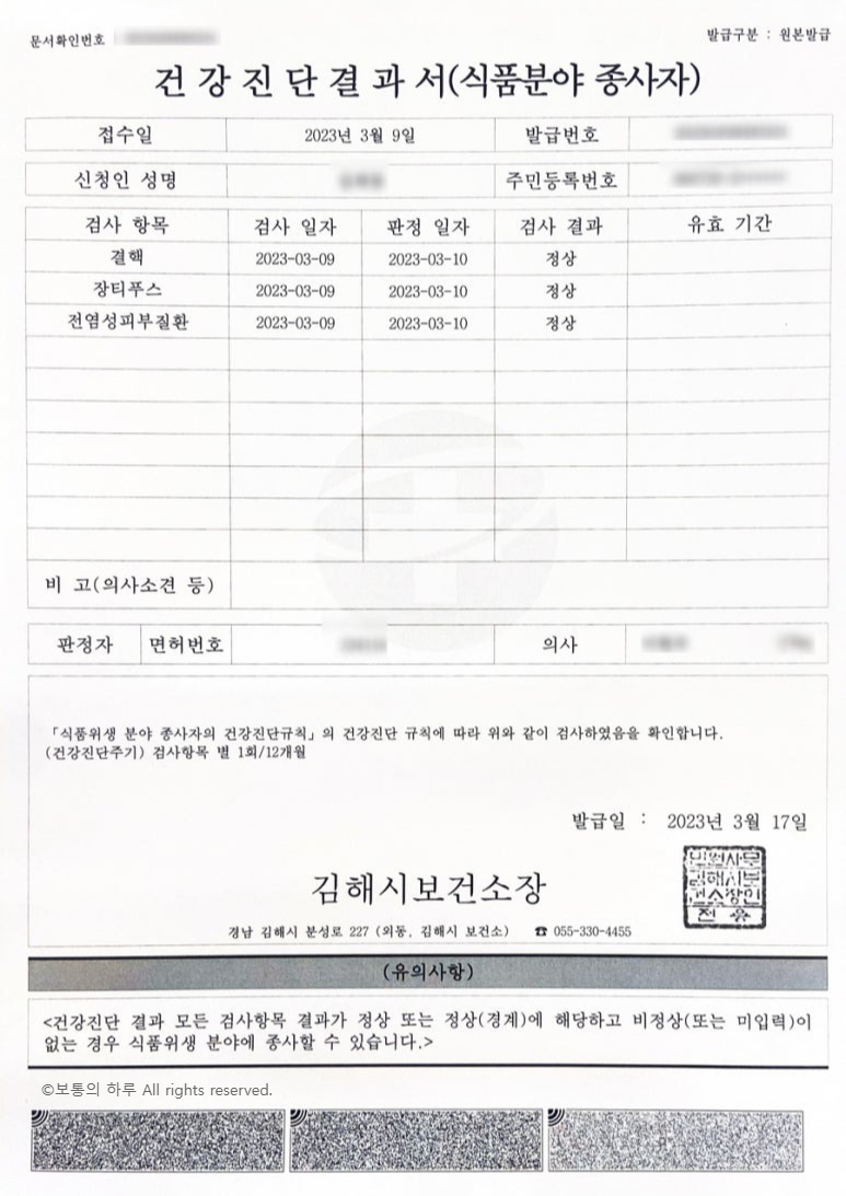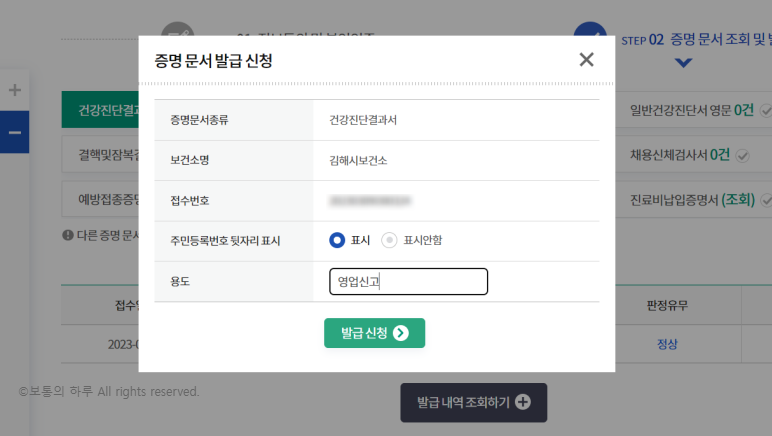 보건소에 건강진단결과서(보건증) 발급 신청을 하러갔어요.